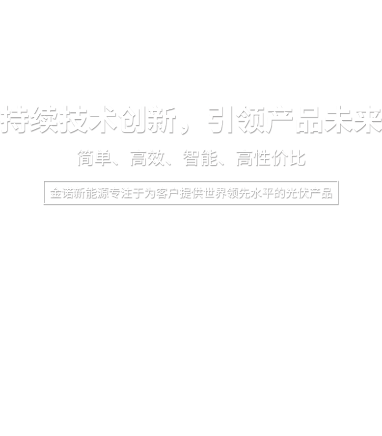 金諾新能源專(zhuān)注于為客戶(hù)提供世界領(lǐng)先水平的光伏產(chǎn)品,大力實(shí)施科技創(chuàng)新。我們秉持“品質(zhì)為先,服務(wù)全球”的理念,為客戶(hù)創(chuàng)造更高價(jià)值,并與您分享世界綠色能源在陽(yáng)光下的成長(zhǎng)喜悅!